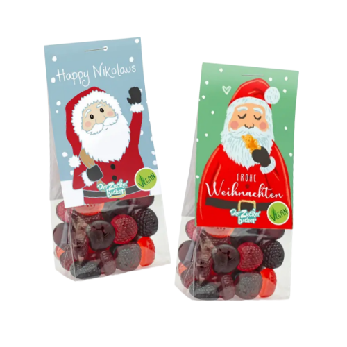 Cosa c'è lì dentro? Le confezioni regalo Merry Christmas e Happy Nikolaus sono piena di deliziose gommose ai frutti di bosco. Ottima anche come idea regalo!