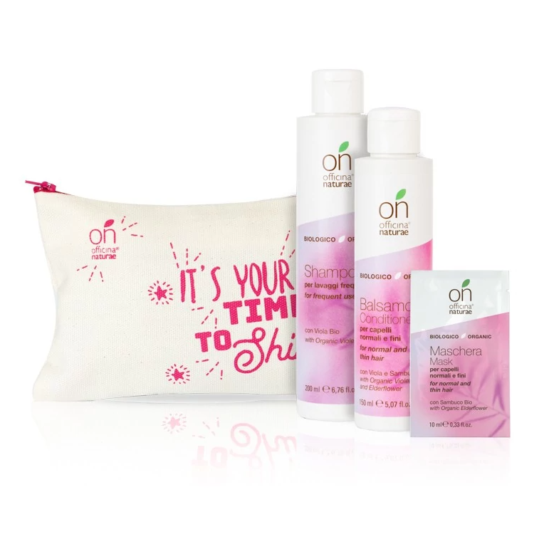 Dove la trovi la carica per partire ogni giorno con la giusta motivazione? Sulla pochette del Mini-Kit Tuttigiorni! Leggi il nostro messaggio stampato su per te! E poi ci vogliono idee chiare in una testa a posto. Per questo nella pochette trovi due prodotti sostenibili della linea onYOU Officina Naturae: lo shampoo da usare quotidianamente e il balsamo per dare vigore ai capelli normali o sottili, che tendono a spezzarsi, da alternare alla maschera con stessa funzione. Ecco il kit da cosa è composto: