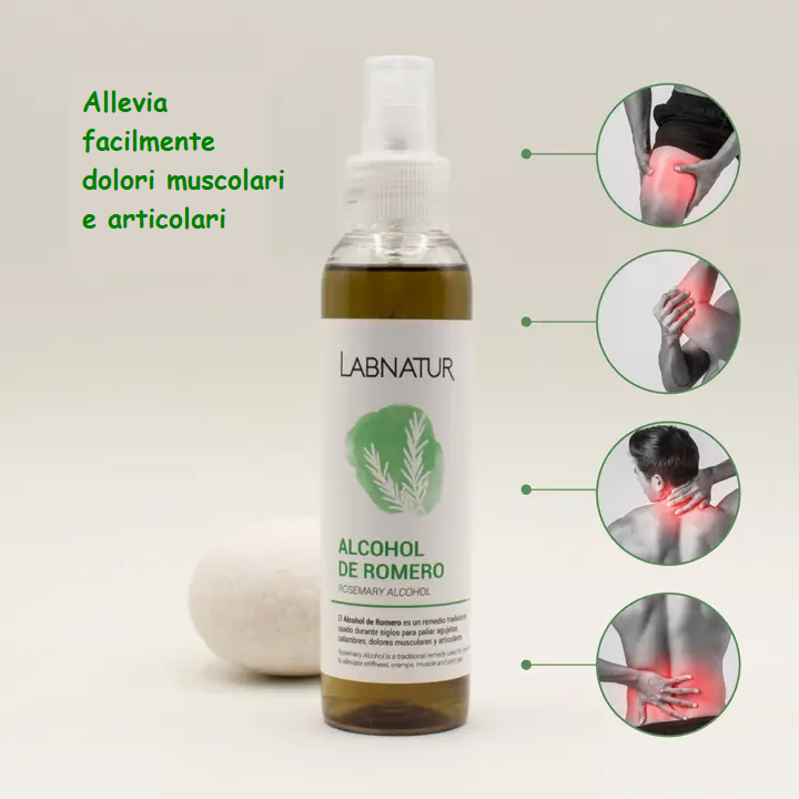 Dolori muscolari. L'alcool di rosmarino è utile per alleviare il dolore muscolare, con un delicato massaggio possiamo rilassare il muscolo colpito e distenderlo.