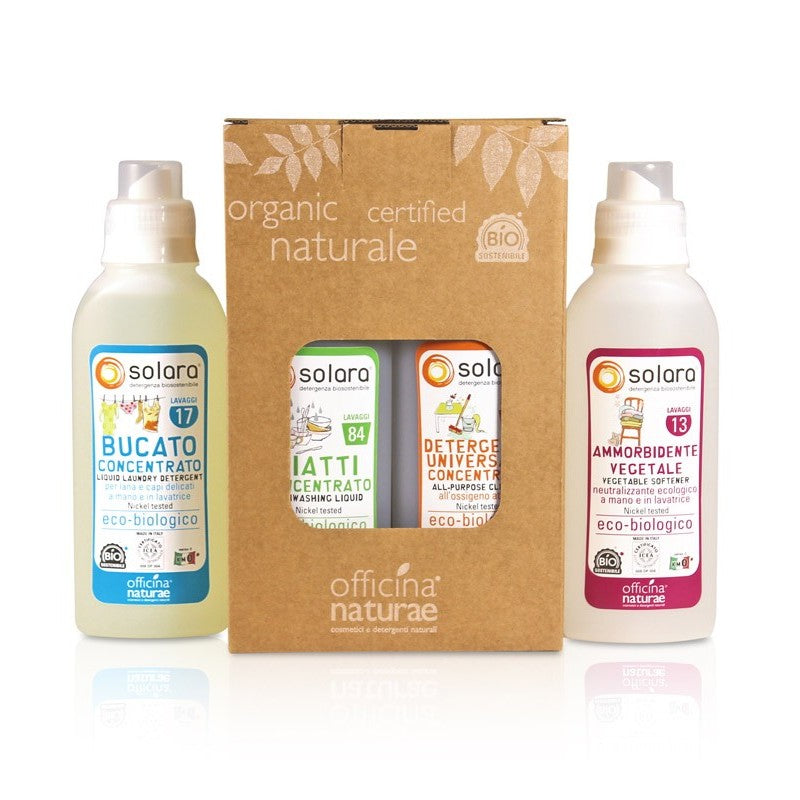 Il Box Prêt-a-Laver e una confezione composta da quattro detergenti Solara nel comodo formato da 500 ml di: