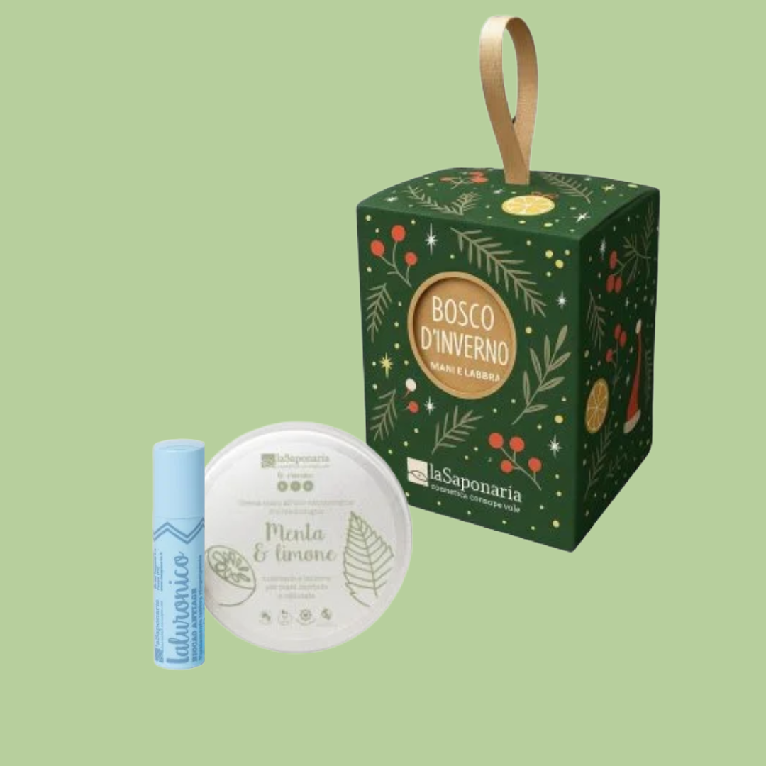 La lanterna contiene Crema mani Menta&Limone + Biocao Ialuronico