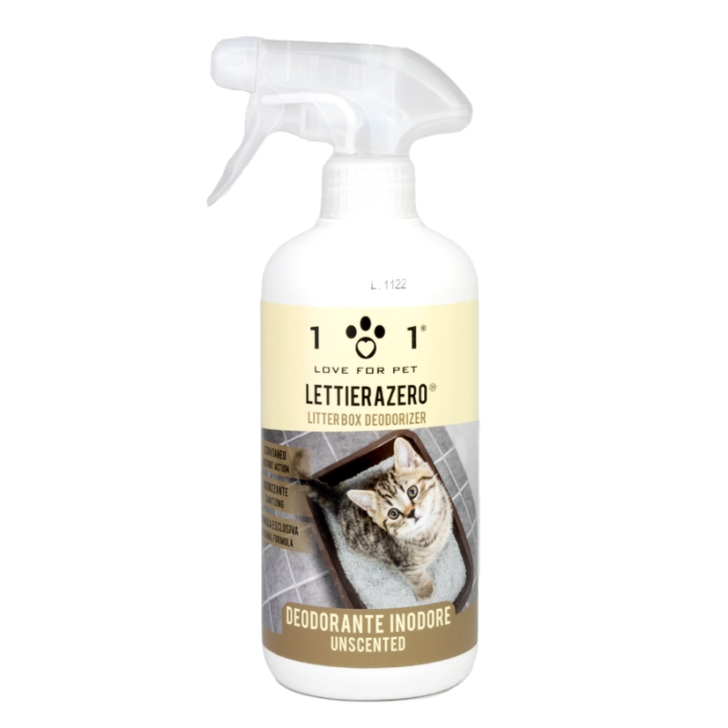 LettieraZero è una soluzione esclusiva 101 dedicata agli ambienti frequentati da gatti: elimina all'istante e in modo persistente tutti i cattivi odori dalla lettiera e dalle cucce in stoffa, e affianca all'azione deodorante un'intensa azione igienizzante, aiutando a ridurre la formazione dei cattivi odori e contrastando la proliferazione dei batteri. Assolutamente inodore, naturale, rispetta lo spazio vitale del gatto e non lo espone a fragranze o profumi che potrebbero risultare sgraditi.