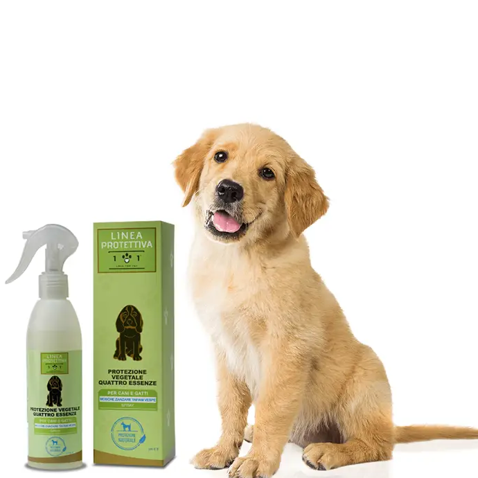 Una lozione protettiva con intensa attività anti mosche, zanzare, pappataci e altri insetti, indicata per Cani e Gatti. Ricca e fragrante, piacevolmente profumata con quattro estratti vegetali attivi, leggerissima sul pelo, questa lozione spray è l'ideale per le passeggiate con i nostri amici a quattro zampe e per la permanenza all'aria aperta, dalla primavera all'autunno. È affidabile ed efficace contro le punture, delicata sulla pelle e adatta per l'uso frequente.