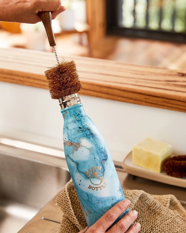 La spazzola per bottiglie in fibra vegetale naturale si adatta perfettamente anche alle bottiglie d'acqua a collo stretto.
